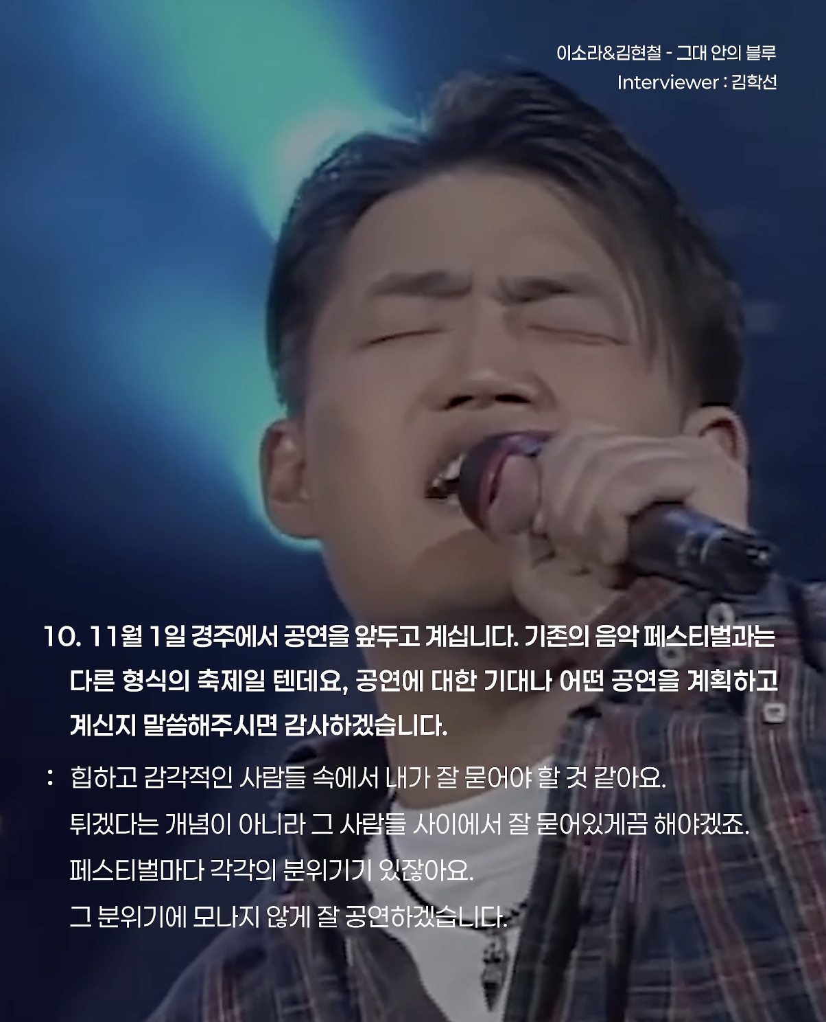 결국 내가 할 수 있는 건 음악밖에는 없다는 생각을 하는 거예요.