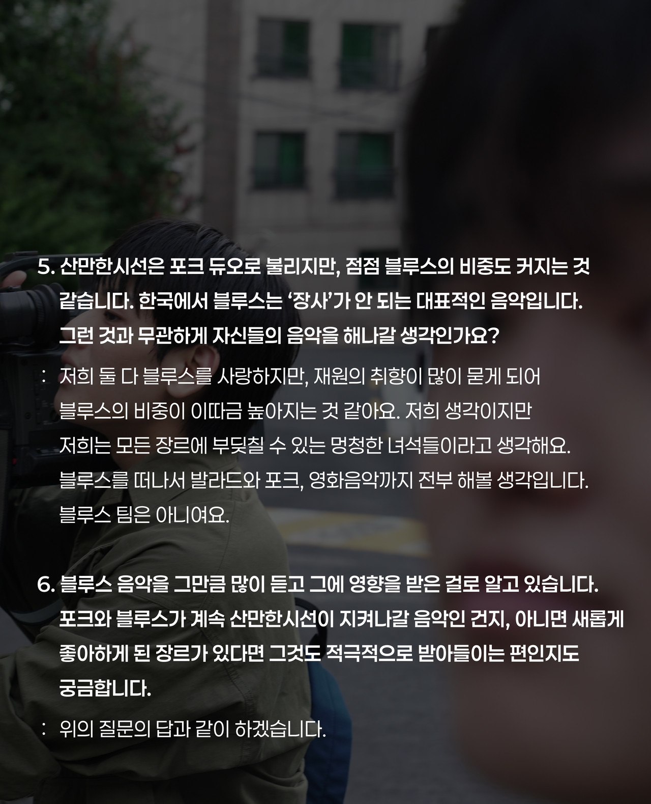 저희 둘이 노래하고자 하는 영역은 늘 생활에 있습니다.