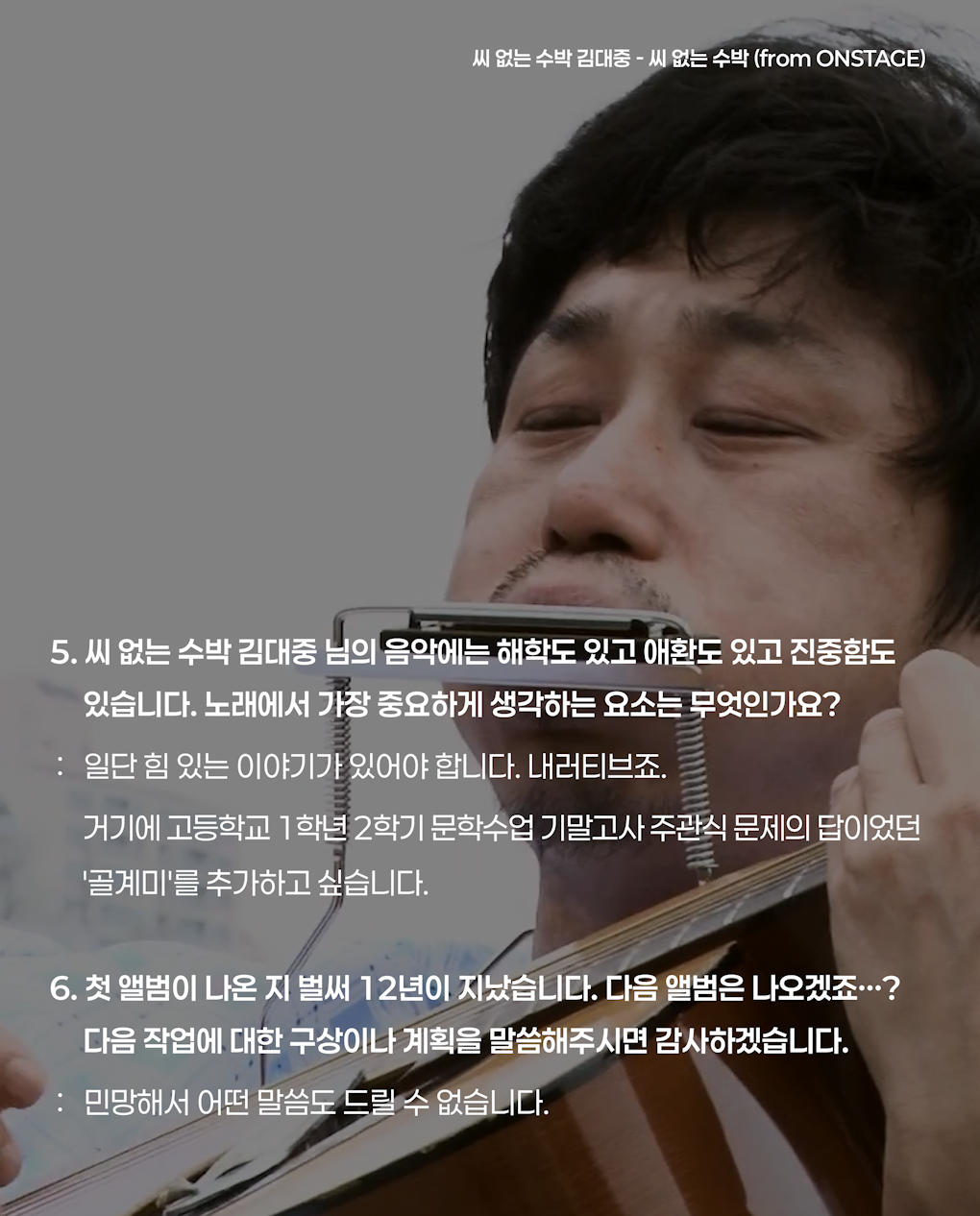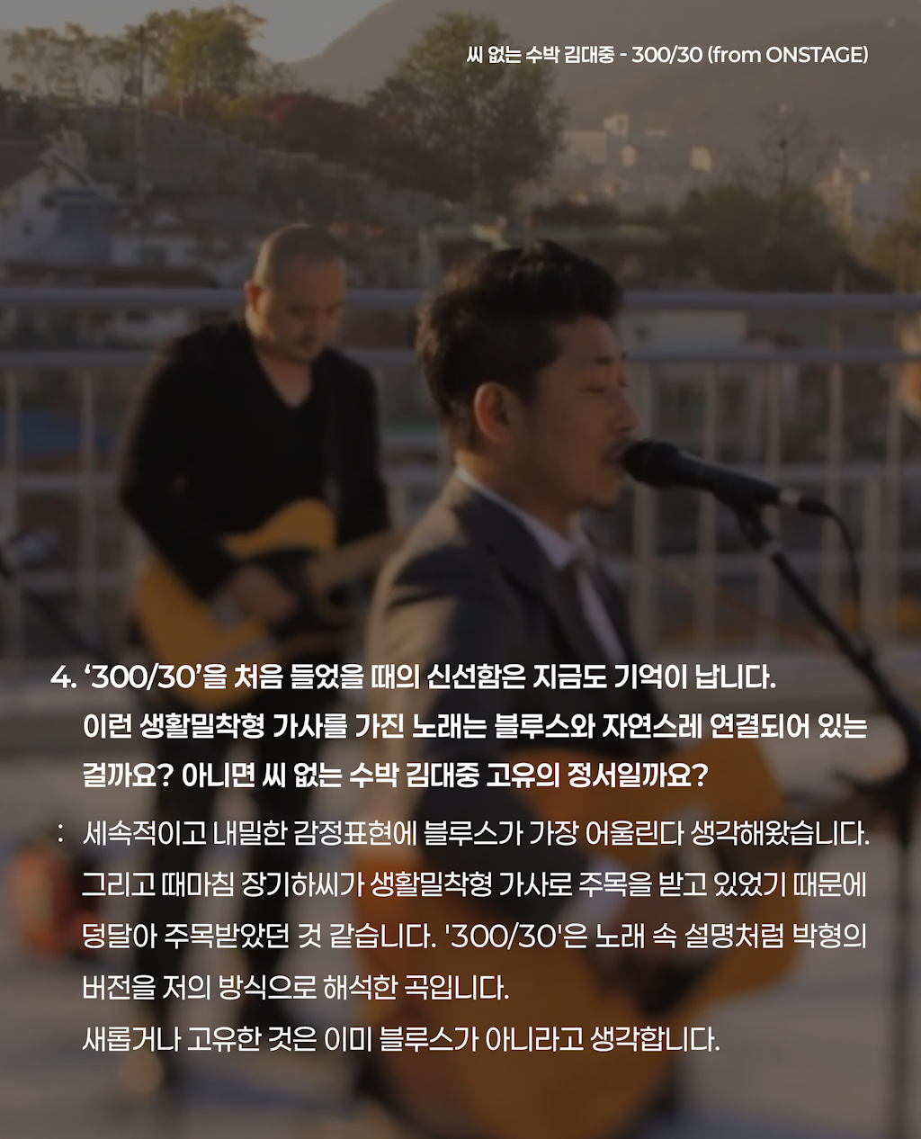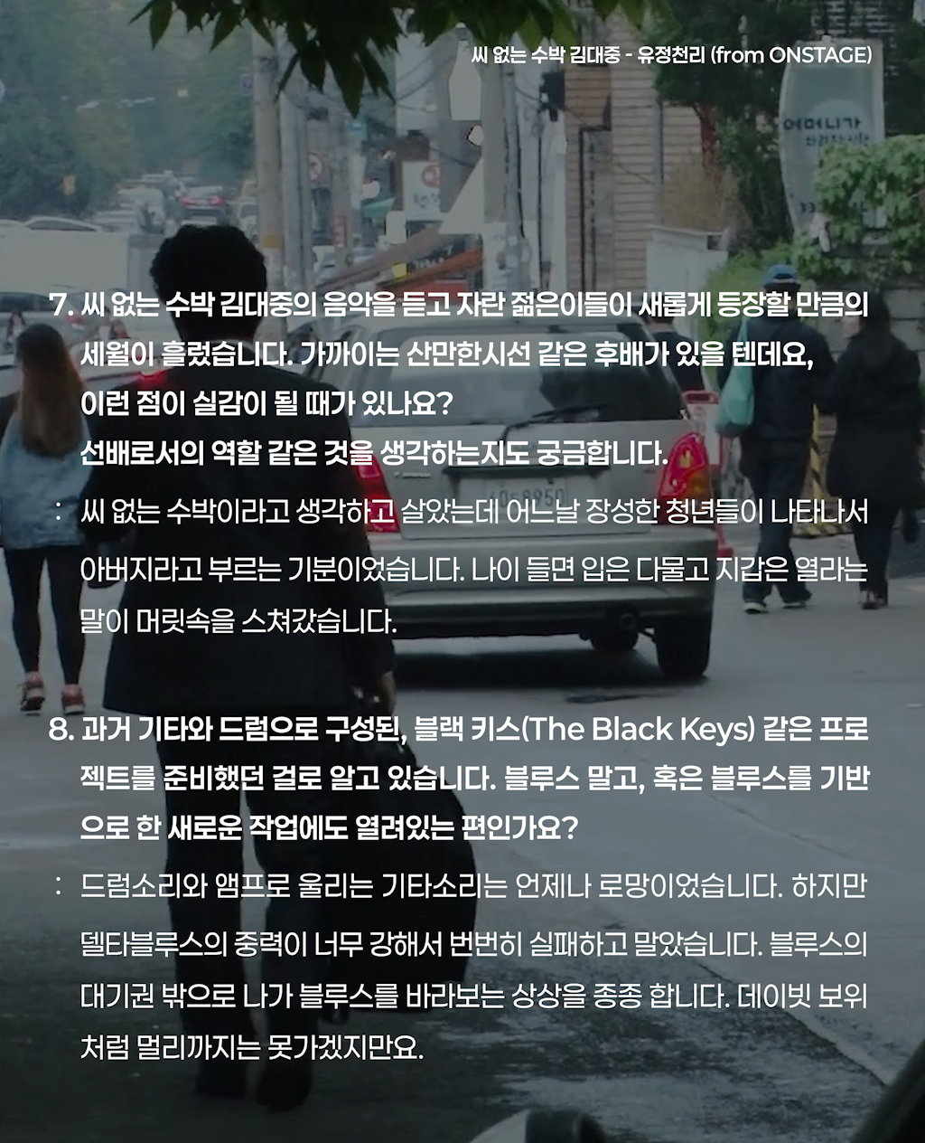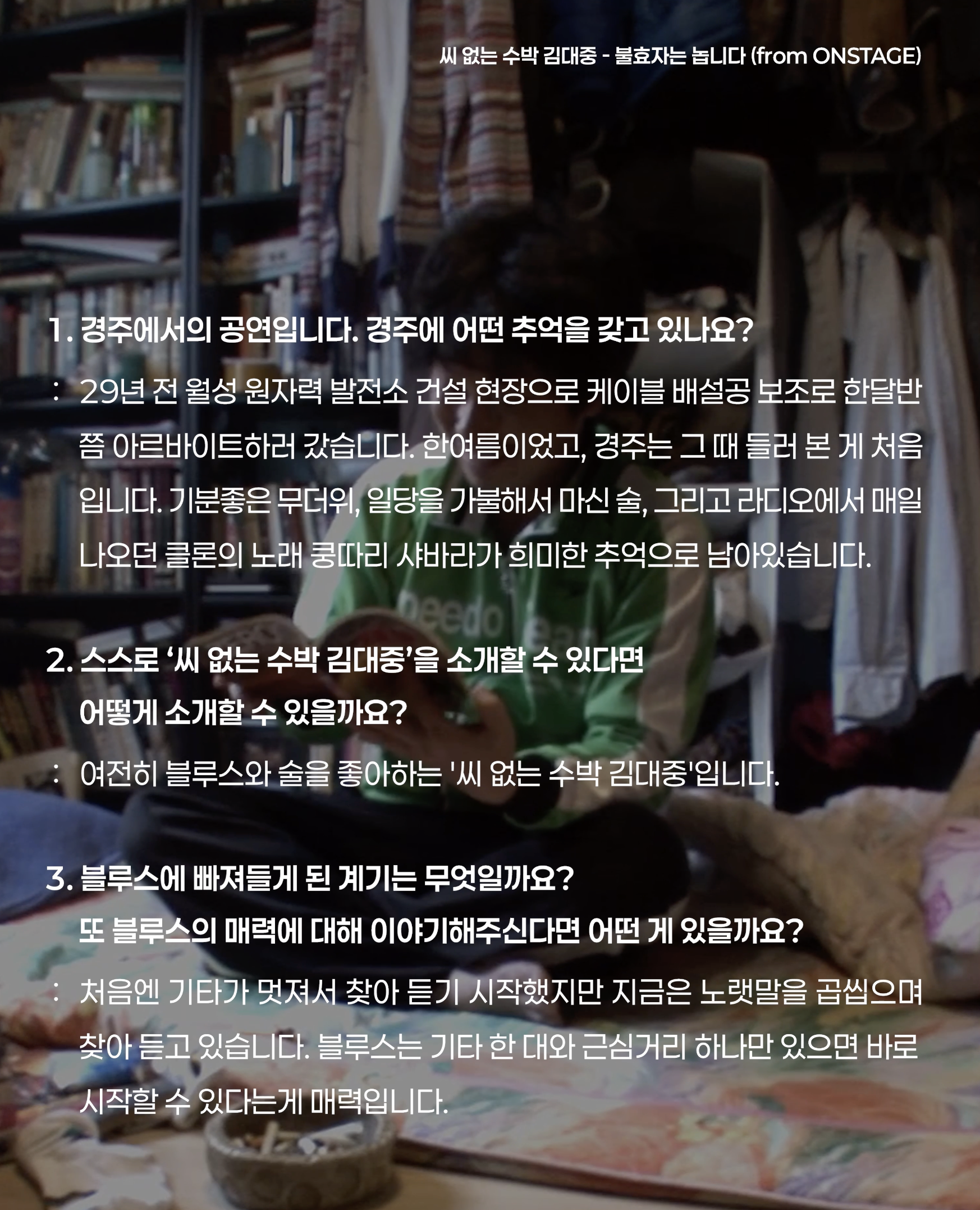 여전히 블루스와 술을 좋아하는 '씨 없는 수박 김대중'입니다.